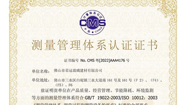 喜報!榮冠公司獲得AAA級“測量管理體系認(rèn)證”證書...